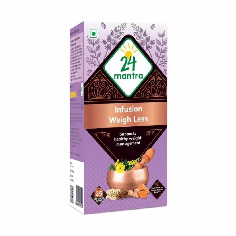 24 Mantra Organic Weigh Less Ayurvedic Infusion is a Mix supporting healthy weight management. It brings the goodness of ancient Ayurvedam practice and brings it in a convenient dip bag to get rid of our body impurities. ...Show more