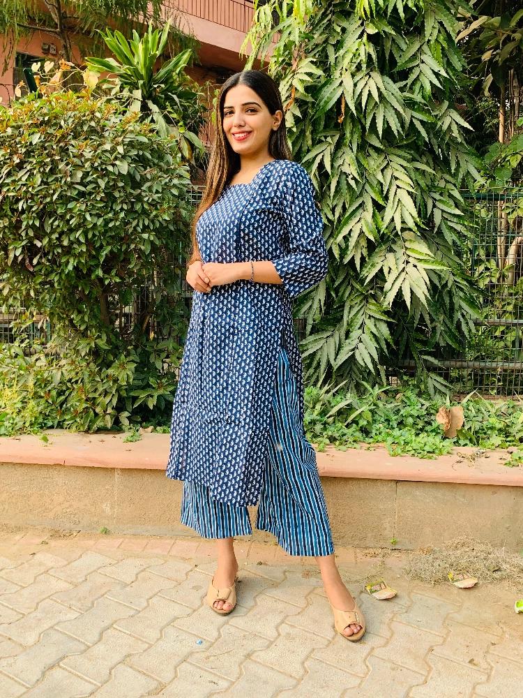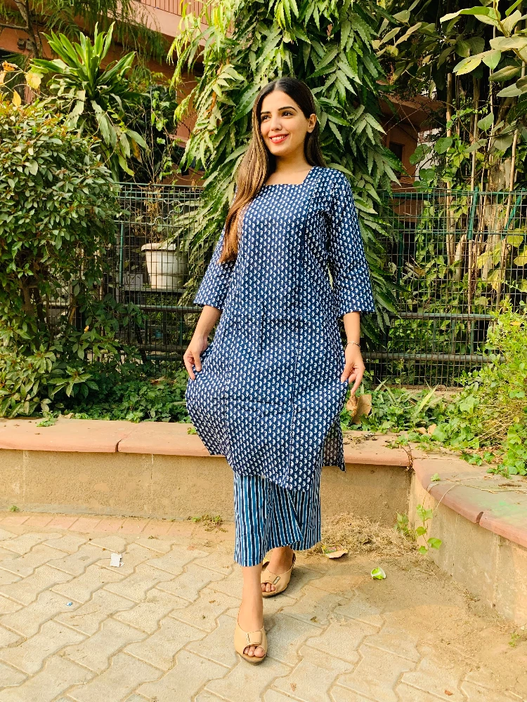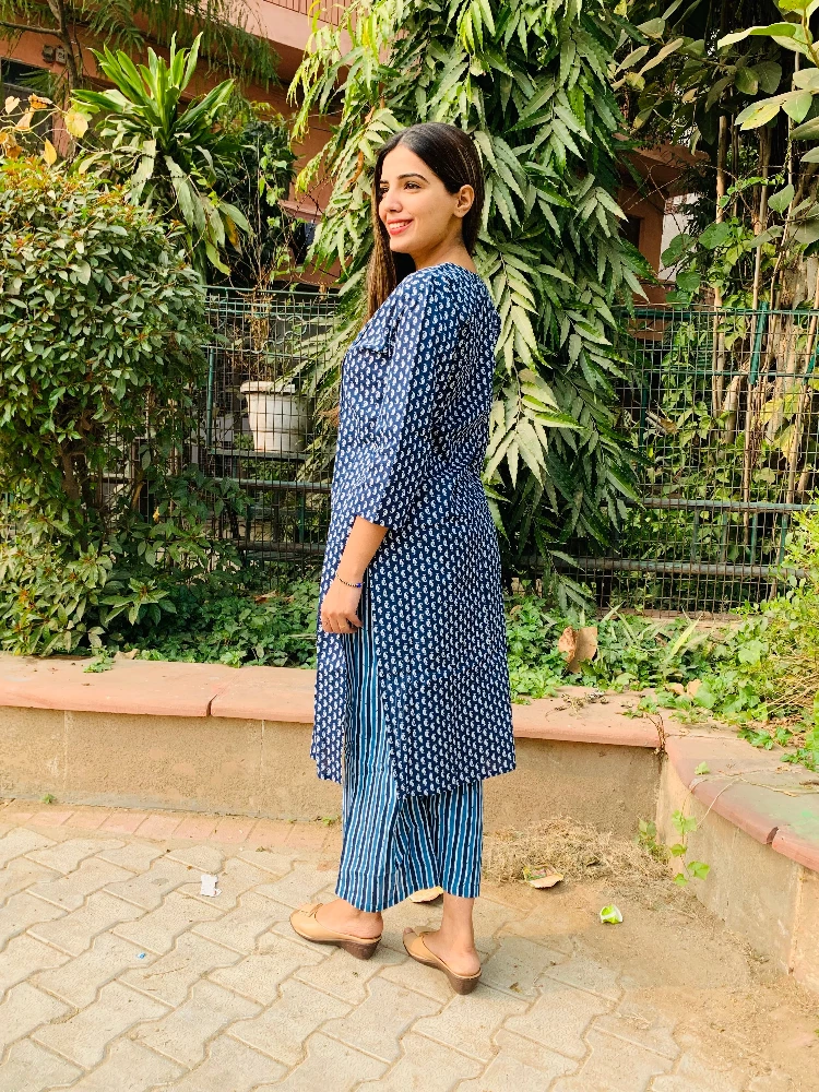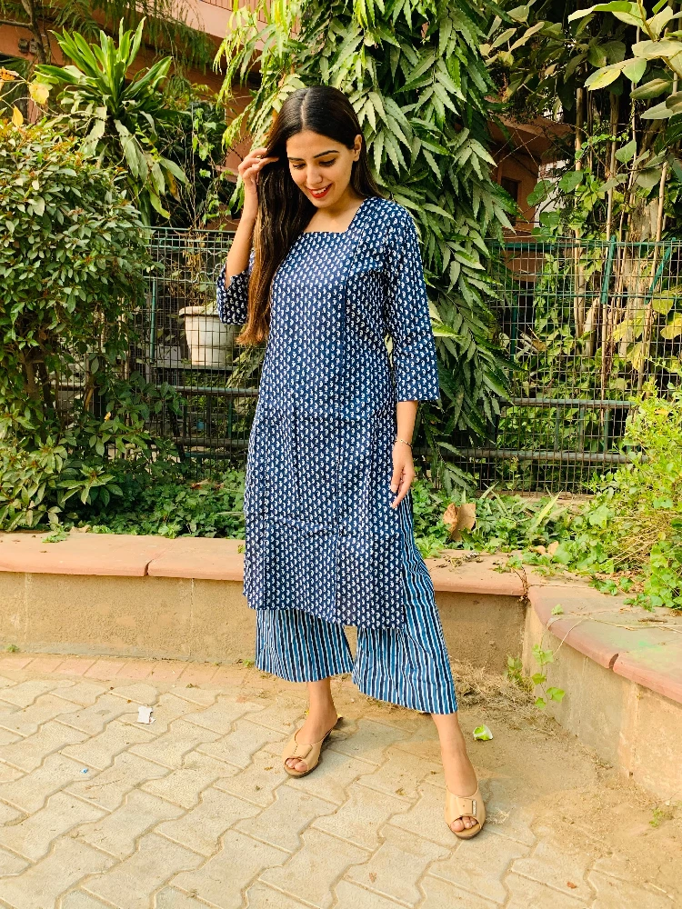 Aegan Blue Kurti Palazzo Set