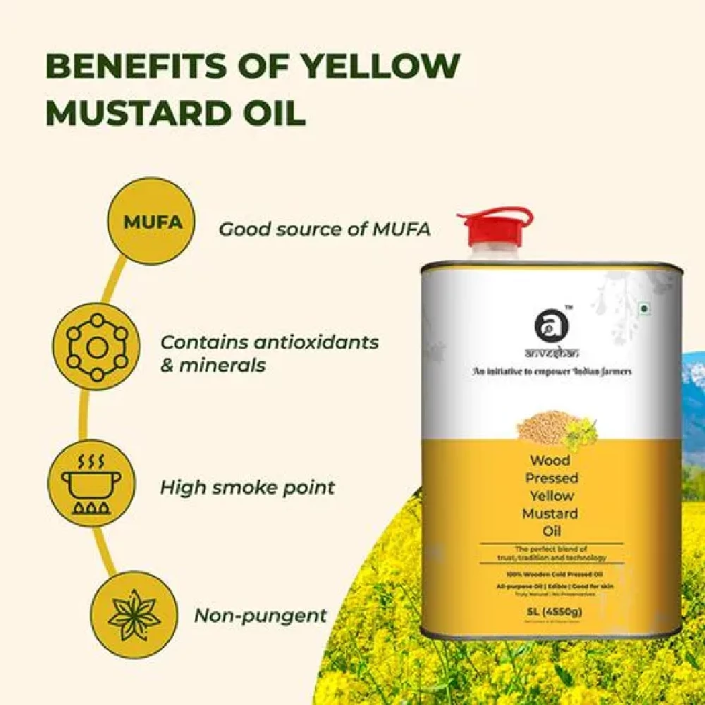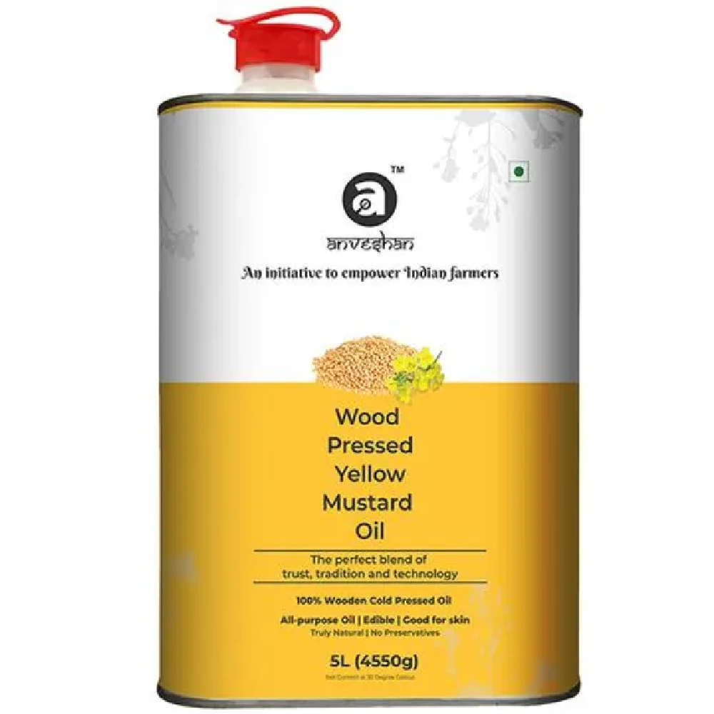 Anveshan Wood Cold Pressed Kachi Ghani Yellow Mustard Cooking Oil, 5 L-1.webp