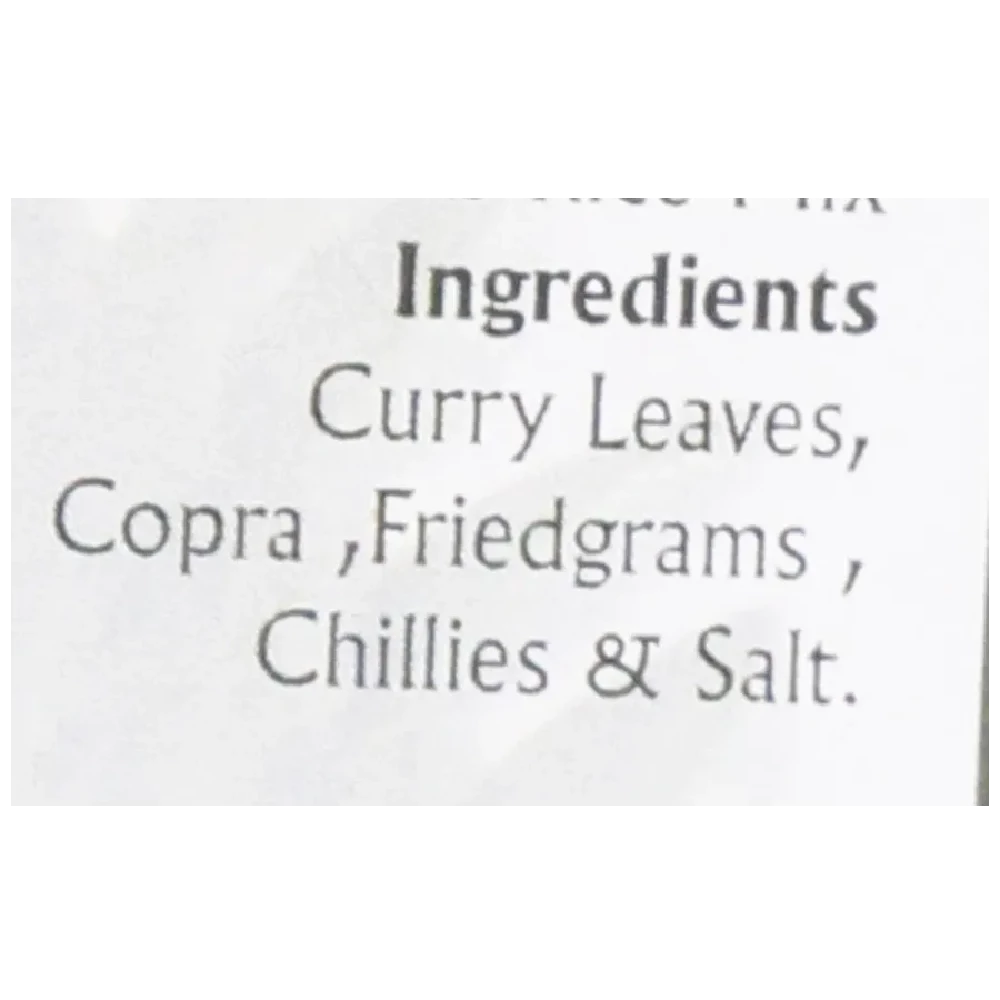 We use mature, fresh curries to make this chutney powder. Curry Leaves Chutney Powder is a healthy accompaniment that is served with South Indian breakfast dishes like Idli, Dosa. These are ready to eat Chutney Powders. ...Show more