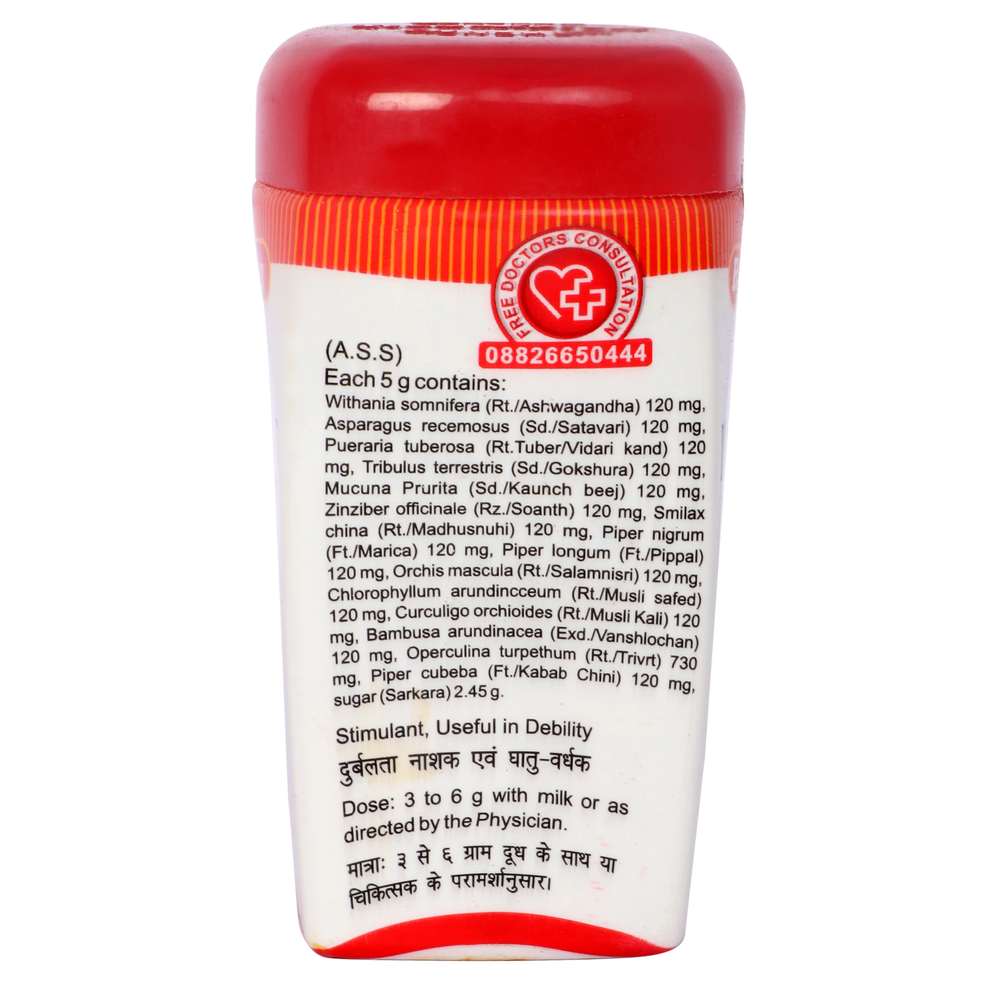 Baidyanath Dhatupaushtik Churna contains Shatavari, Gokhru Beej, Beejband, Banshlochan, Kabab-chini, Chopchini, Kaunch beej, Safed musli, Kali musli, Sonth, Kali Mirch, Pipal, Salam mishri, Vidarikand, Ashwagandha, Nisoth, Mishri, and more. Kali Mir ...Show more