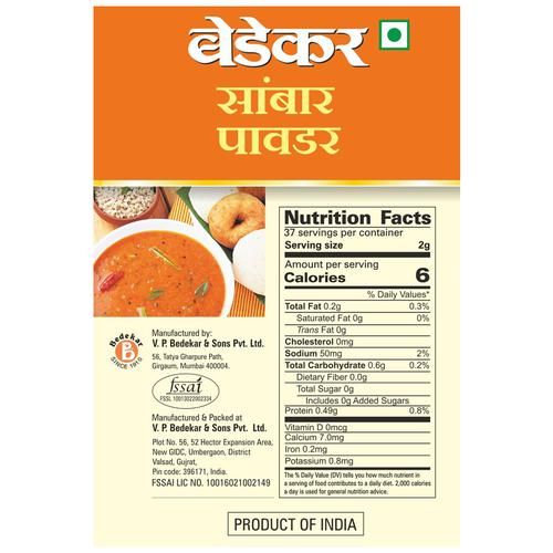 Bedekar Sambhar Powder - 100percent Natural & Pure, 75 g Box-1.webp Bedekar Sambhar Powder - 100percent Natural & Pure, 75 g Box-2.webp Bedekar Sambhar Powder - 100percent Natural & Pure, 75 g Box-3.webp Bedekar Sambhar Powder - 100percent Natural & Pure, 75 g Box-4.webp