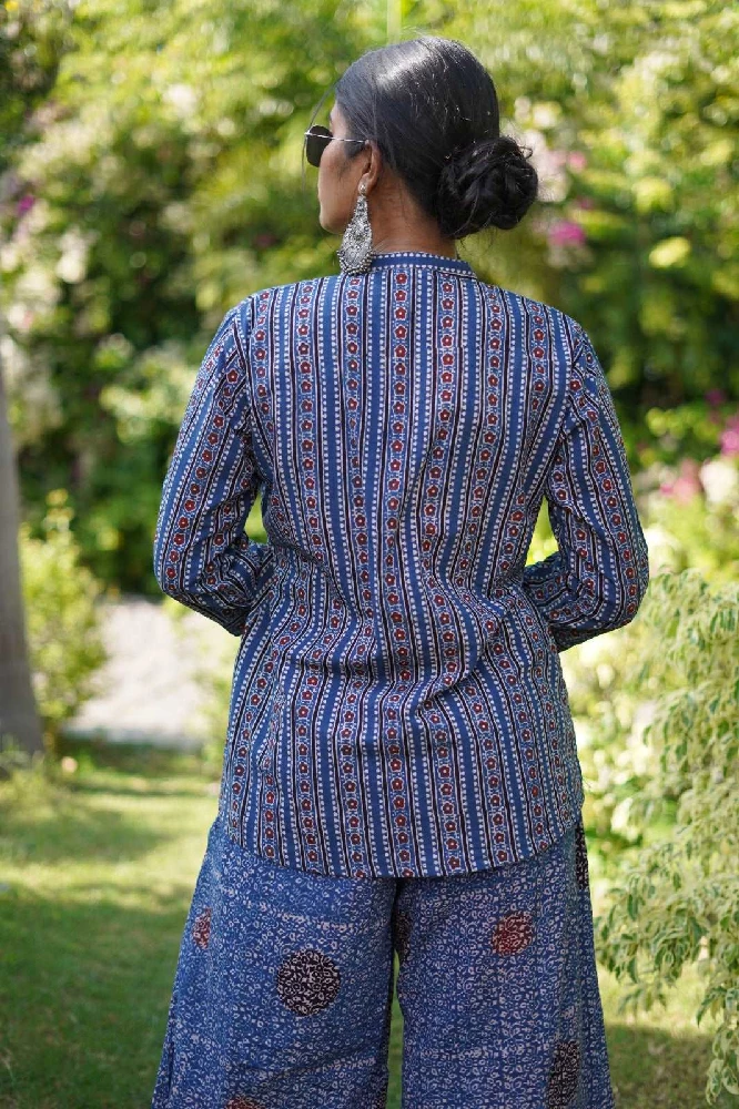 Blue top with Ajrakh Hand Block-Print-1.webp Blue top with Ajrakh Hand Block-Print-2.webp Blue top with Ajrakh Hand Block-Print-3.webp
