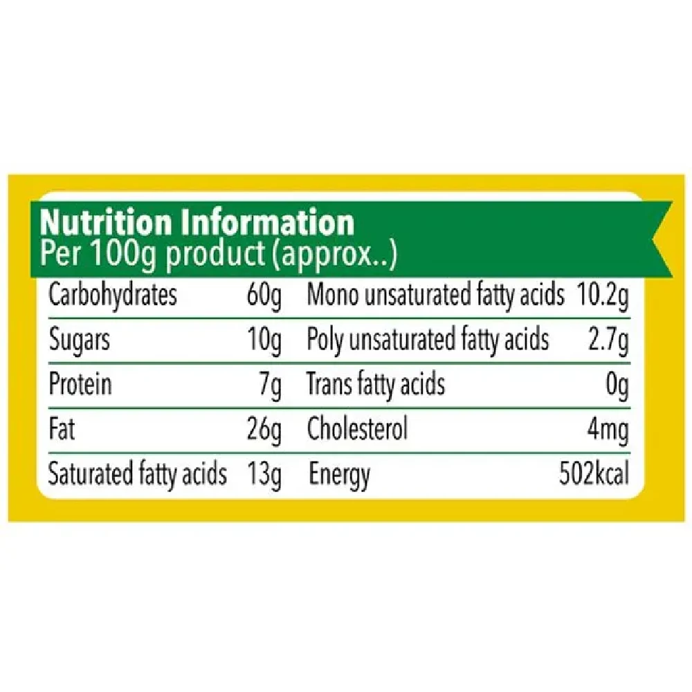 Britannia 50-50 Maska Chaska Salted Biscuits are prepared with the goodness of butter and peppered with the choicest of herbs. Crunchy and crispy, these biscuits have a light, savoury taste with buttery flavours. Britannia biscuits, cookies, cakes an ...Show more