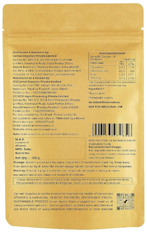 Carmel Organics Arjuna Bark Powder, 100 g-1.webp