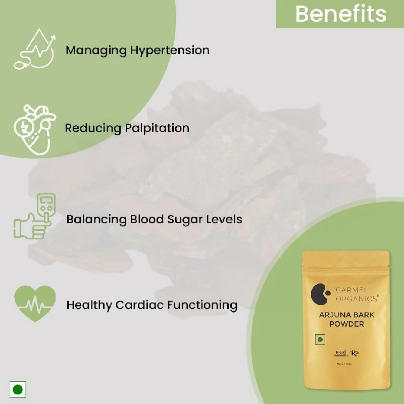Carmel Organics Arjuna Bark Powder is a premium herbal supplement known for its potential heart health benefits. Sourced from the Arjuna tree, this powder is rich in natural compounds that support cardiovascular wellness and overall vitality. Ideal f ...Show more