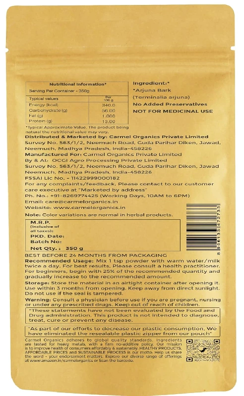 Carmel Organics Arjuna Bark Whole is a high-quality, natural herb known for its potential cardiovascular benefits. Sourced from organic Arjuna trees, this bark is carefully processed to retain its rich nutrient profile. Ideal for promoting heart heal ...Show more