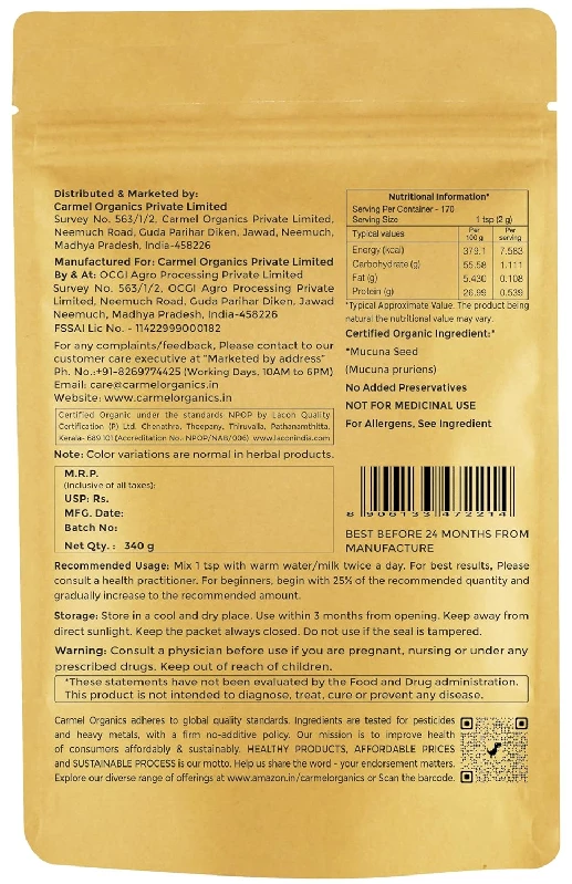 Carmel Organics Mucuna White Seed Powder, 340 g-1.webp