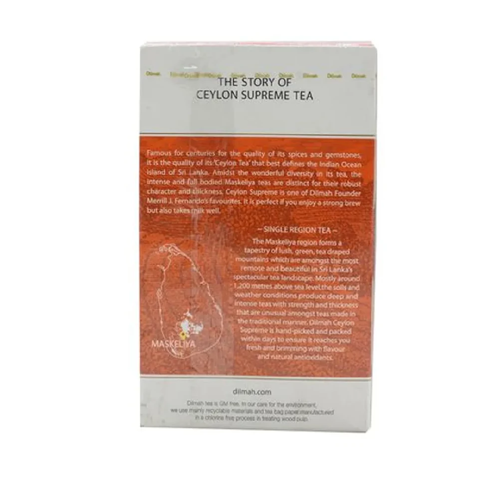 DILMAH Ceylon Supreme Tea Bags, 50 g (25 Bags x 2 g each)-1.webp DILMAH Ceylon Supreme Tea Bags, 50 g (25 Bags x 2 g each)-2.webp DILMAH Ceylon Supreme Tea Bags, 50 g (25 Bags x 2 g each)-3.webp DILMAH Ceylon Supreme Tea Bags, 50 g (25 Bags x 2 g each)-4.webp