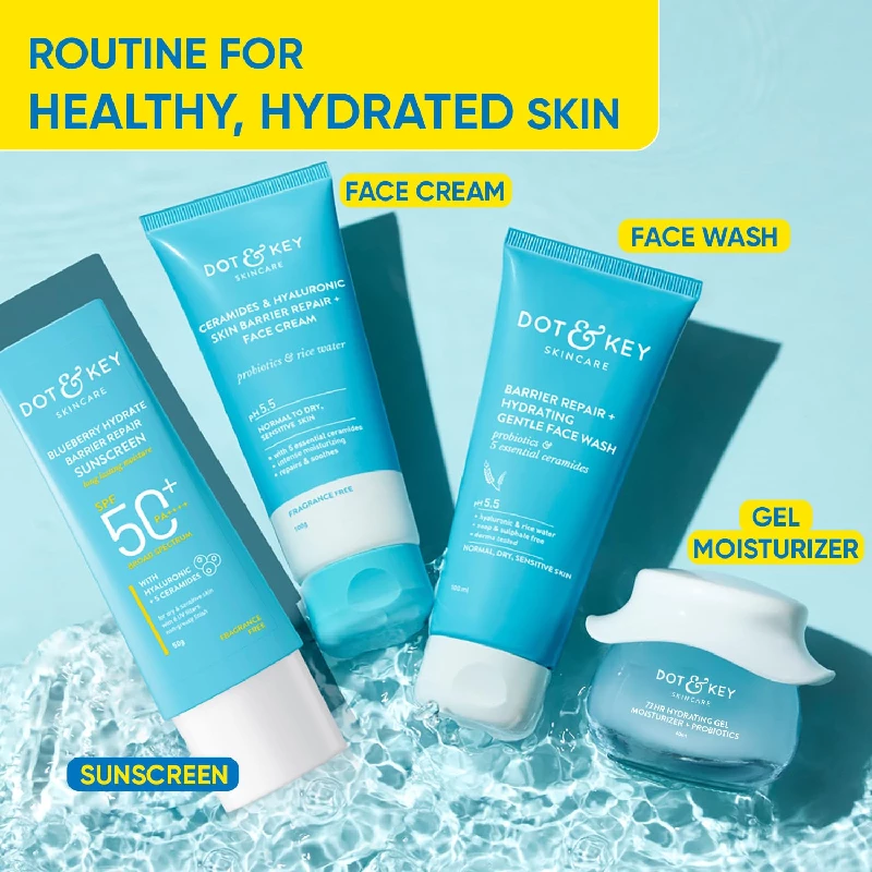 Discover Dot & Key Blueberry Hydrate Barrier Repair Sunscreen SPF 50+, PA++++ - your skin's defense against sun damage. Infused with blueberry extracts, it hydrates and repairs your skin barrier while providing broad-spectrum protection. Enjoy th ...Show more