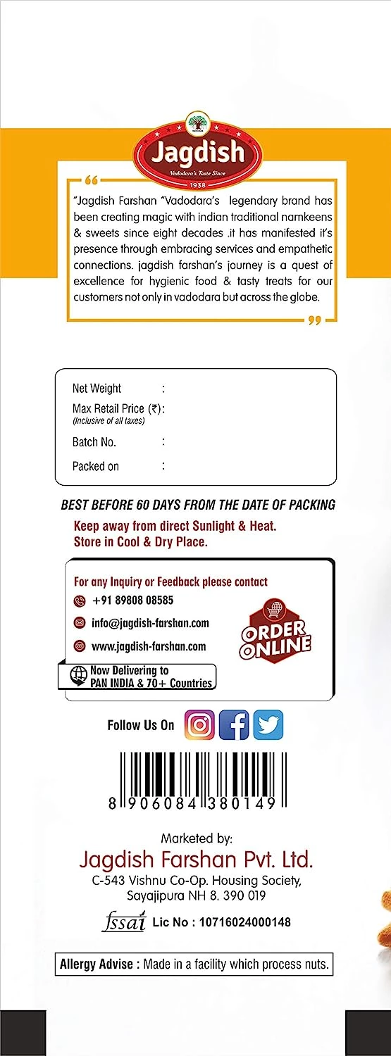 Bengal gram powder mixed with a select spice mix of red chilies, black pepper, lemon rind, sesame and a hint of sugar. Truly delectable in every bite. Savour the most popular namkeen mixes, snacks and savouries of Gujarat in the comfort of your homes ...Show more