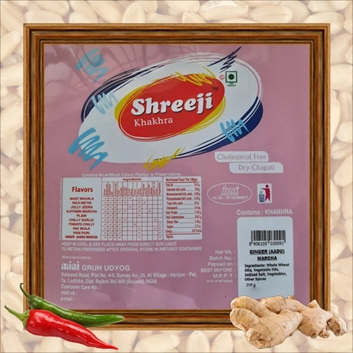 100% Whole Wheat Meal is used – No `Maida’ (Wheat Flour), & Roasted with a little amount of best quality edible oil. Khakhra is a very popular snack among the Gujarati community. Khakhra is a thin, common in the Gujarati cuisine of western India. ...Show more