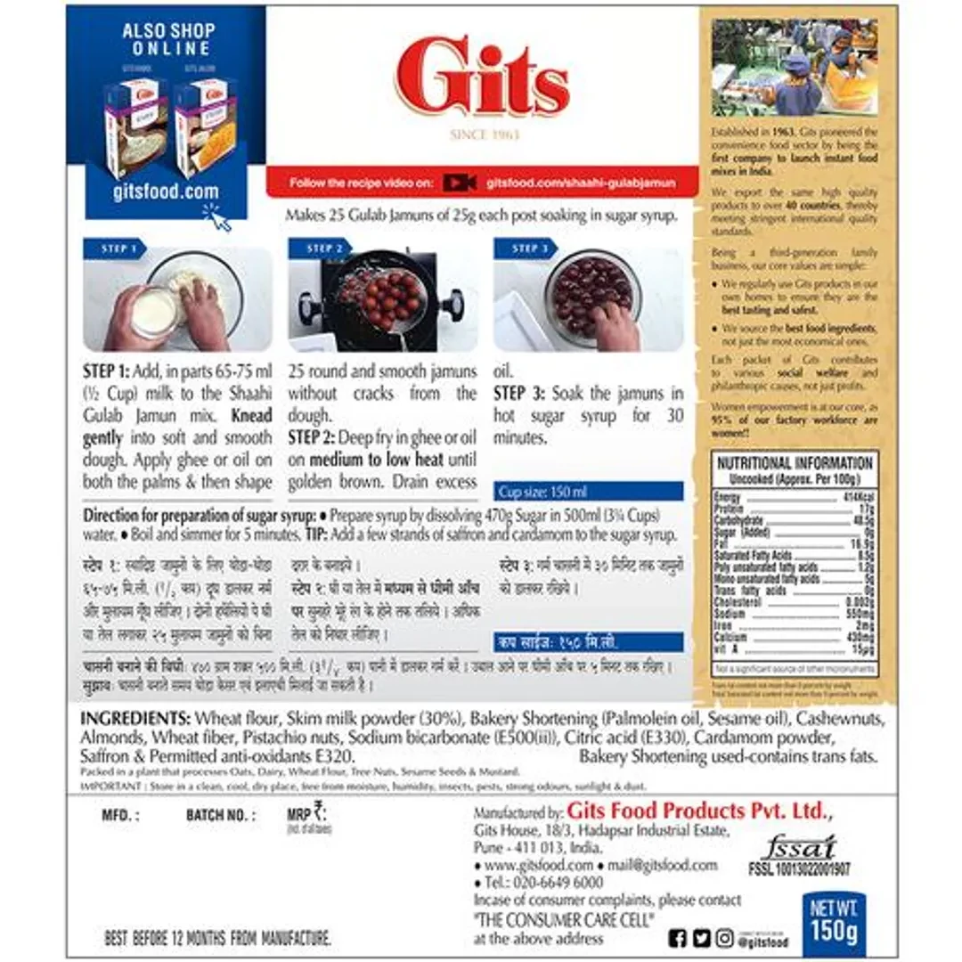 Gits Dessert Mix - Shahi Gulab Jamun, 150 g-1.webp Gits Dessert Mix - Shahi Gulab Jamun, 150 g-2.webp Gits Dessert Mix - Shahi Gulab Jamun, 150 g-3.webp Gits Dessert Mix - Shahi Gulab Jamun, 150 g-4.webp Gits Dessert Mix - Shahi Gulab Jamun, 150 g-5.webp