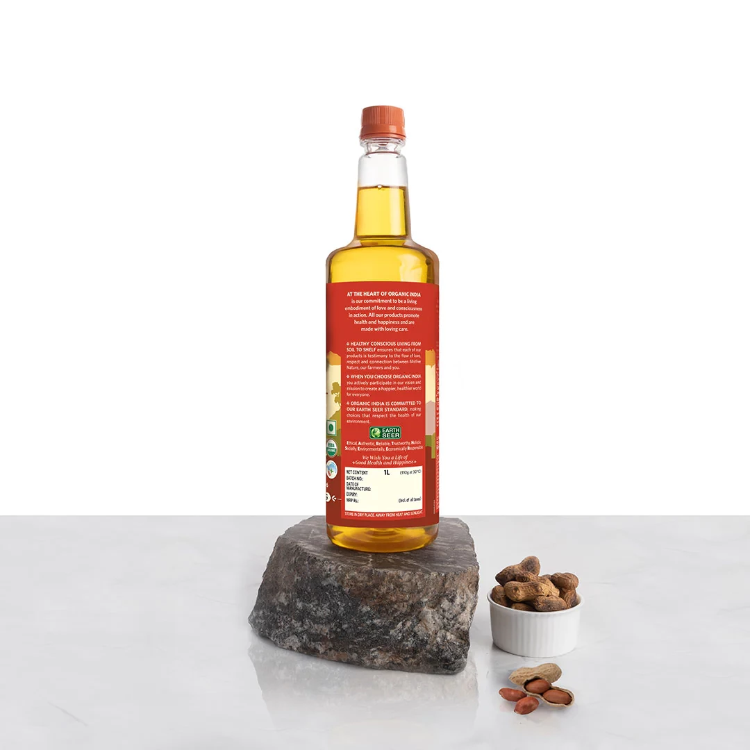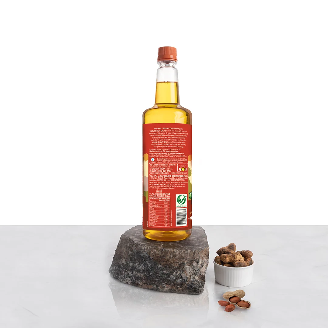 ORGANIC INDIA’S certified organic Groundnut Oil (Peanut Oil) is naturally rich in antioxidants, Vitamins A and E, as well as monounsaturated fatty acids (MUFA) and Omega 6 polyunsaturated fatty acids (PUFA). Groundnut Oil has a high smoke point, maki ...Show more