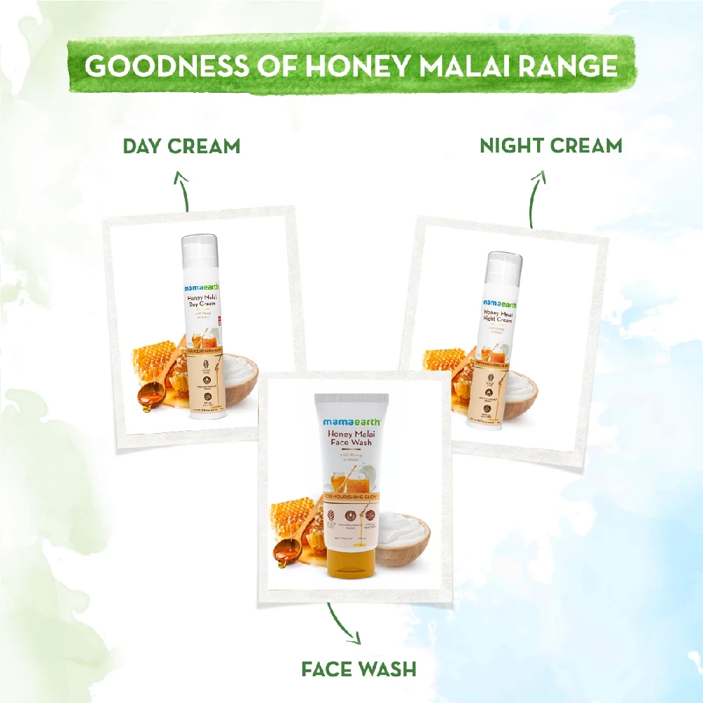 Dreaming of naturally nourished & glowing skin? Meet Mamaearth Honey Malai Night Cream, a deeply moisturizing formula that works overnight to give you soft & radiant skin every morning. Crafted with the traditional goodness of Honey and Malai, this N ...Show more