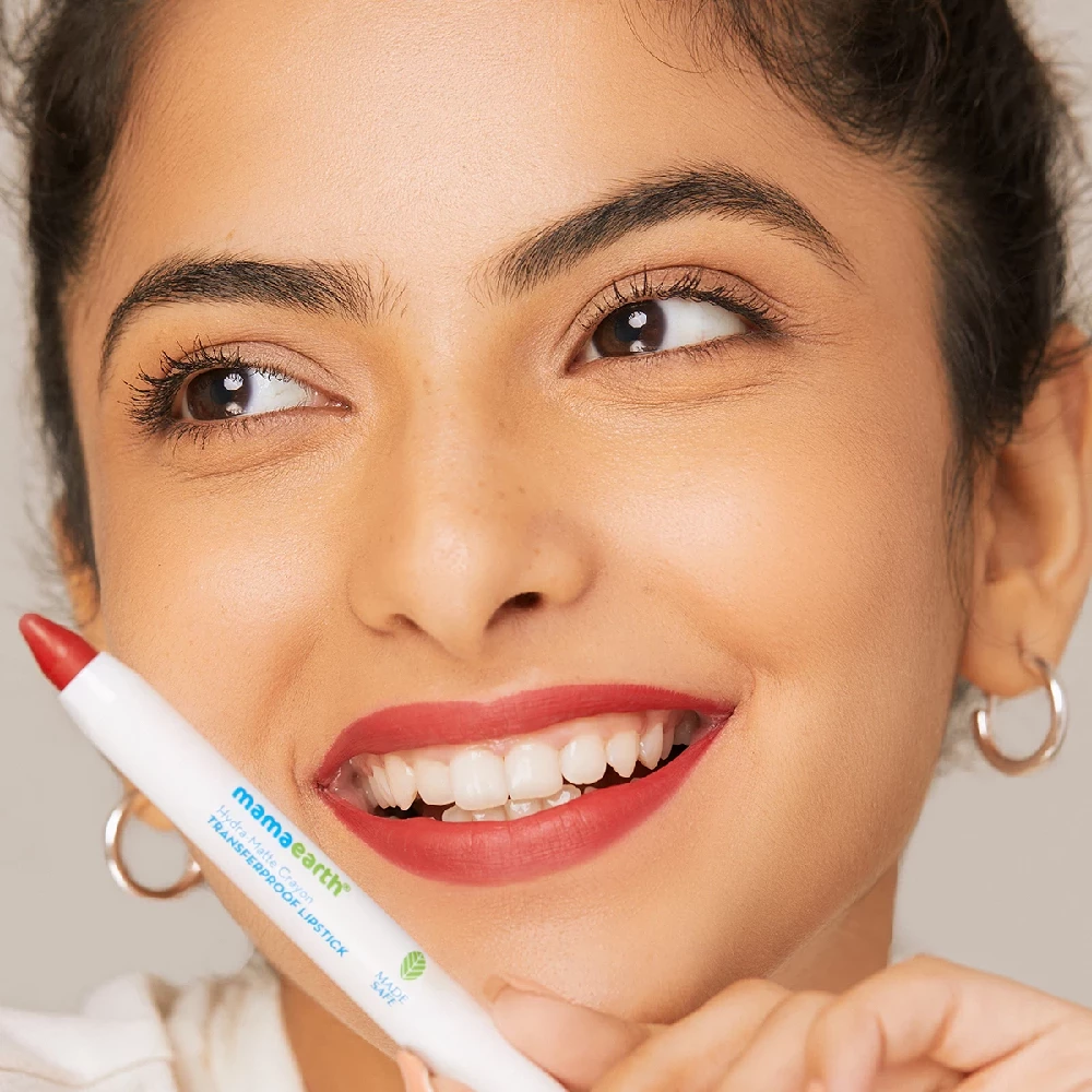 Experience a burst of color at first swipe with Mamaearth Hydra-Matte Crayon Transferproof Lipsticks. Crafted with the goodness of Hyaluronic Acid, the Hydra-Matte Crayon Lipsticks hydrate your lips for 12 hours for that plump pout. Infused with Arga ...Show more