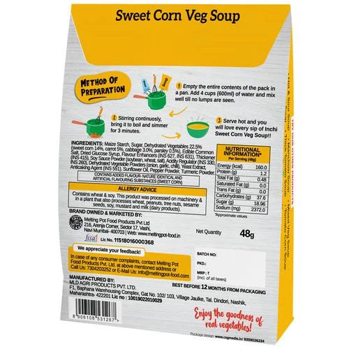 Inchi  Sweet Corn Veg Soup With Real Vegetables - Cook-Up For Any-Time, 48 g Monocarton-1.webp
