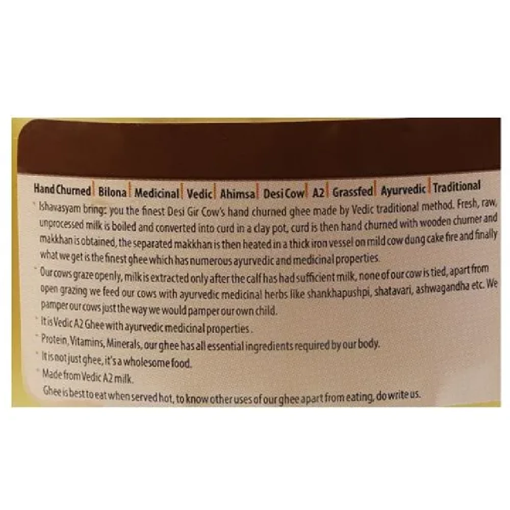 Ishavasyam A2 Desi Gir Cow Ghee is made using A2 milk from native Indian Cows. This A2 milk is packed with nutrients and powerful healing properties. It improves overall wellness without side effects making it a safe and healthy choice. It is natural ...Show more