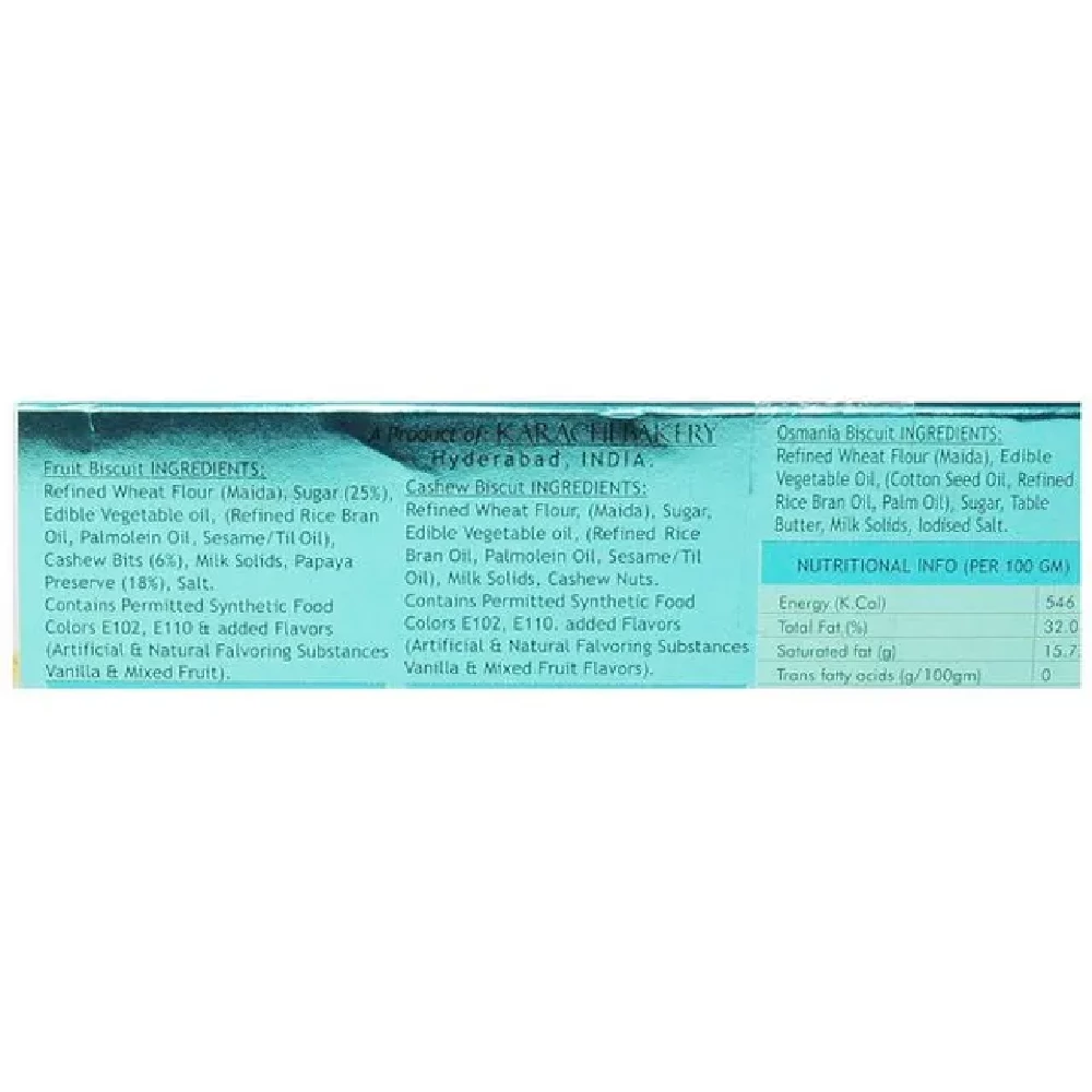 An Assortment Of Fruit Biscuits Cashew Biscuits & Osmania Biscuits.Goodness Since 1953.100% Vegetarian. A staggering chronicle of six decades and still going strong, Karachi Bakery has emerged as a "True Icon of Hyderabad Baking" with a reputation th ...Show more