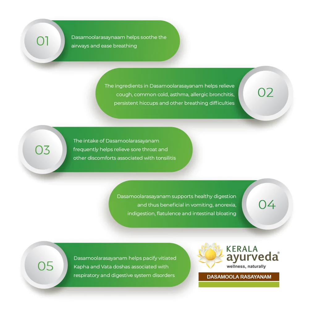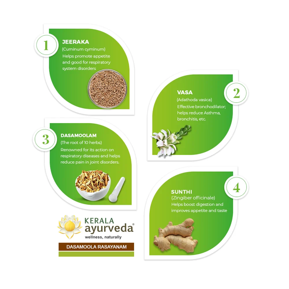 Dasamoola Rasayanam is a powerful Ayurvedic medicine used to treat bronchitis Kerala Ayurvedas bronchitis medicine makes use of a mixture of the Dasamoola or ten roots from some of the most effective ayurvedic herbs plants. This ayurvedic medicine c ...Show more