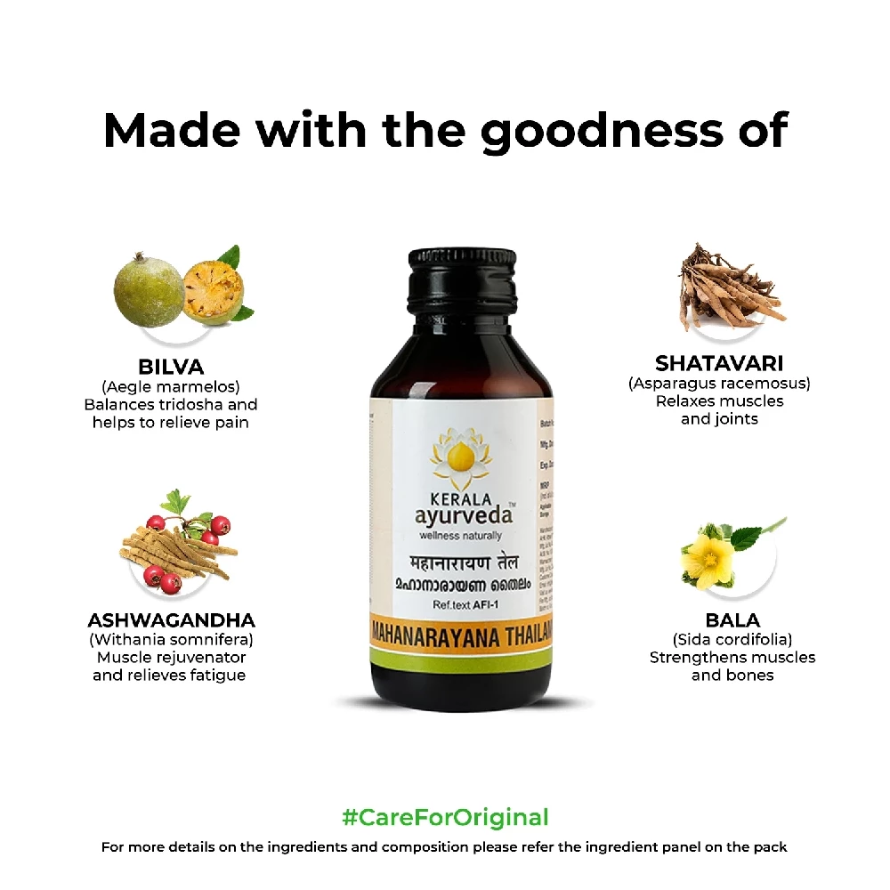 Kerala Ayurveda Mahanarayana Thailam is an advanced clinical Ayurvedic oil that effectively e works for various health conditions also helps strengthen bones and muscles and prevents joint disorders giving instant relief from body pains balances what ...Show more