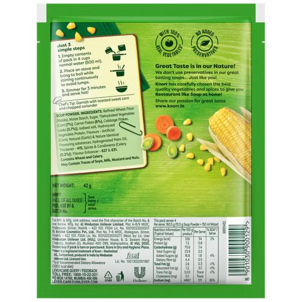 Knorr Sweet Corn Soup - 100% Real Vegetables, No Added Preservatives ...Show more