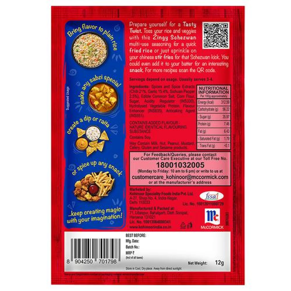 Kohinoor Tasty Twist Zingy Schezwan Multi-Use Seasoning, 12 g-1.webp