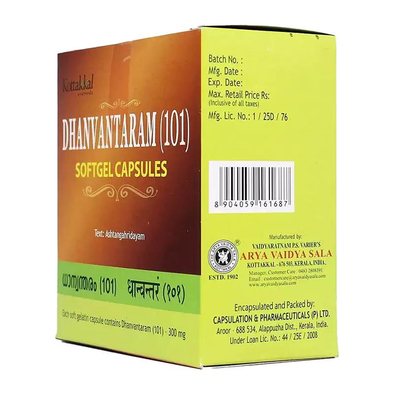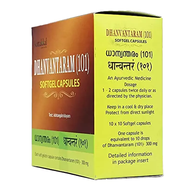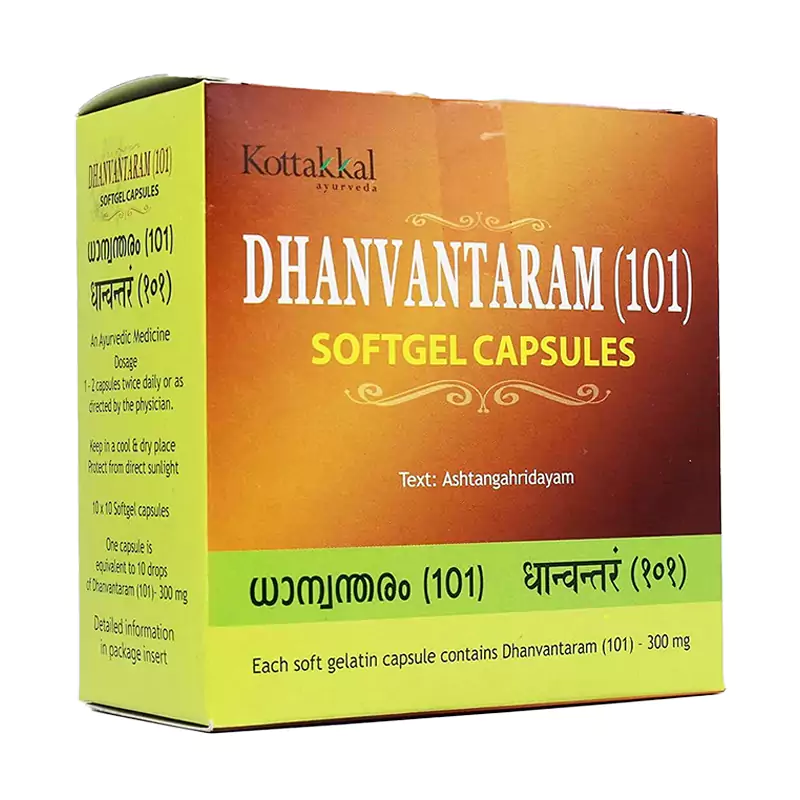 Kottakkal Arya Vaidyasala Dhanvantaram (101) Softgel Capsules, 100 Capsules-1.webp Kottakkal Arya Vaidyasala Dhanvantaram (101) Softgel Capsules, 100 Capsules-2.webp Kottakkal Arya Vaidyasala Dhanvantaram (101) Softgel Capsules, 100 Capsules-3.webp