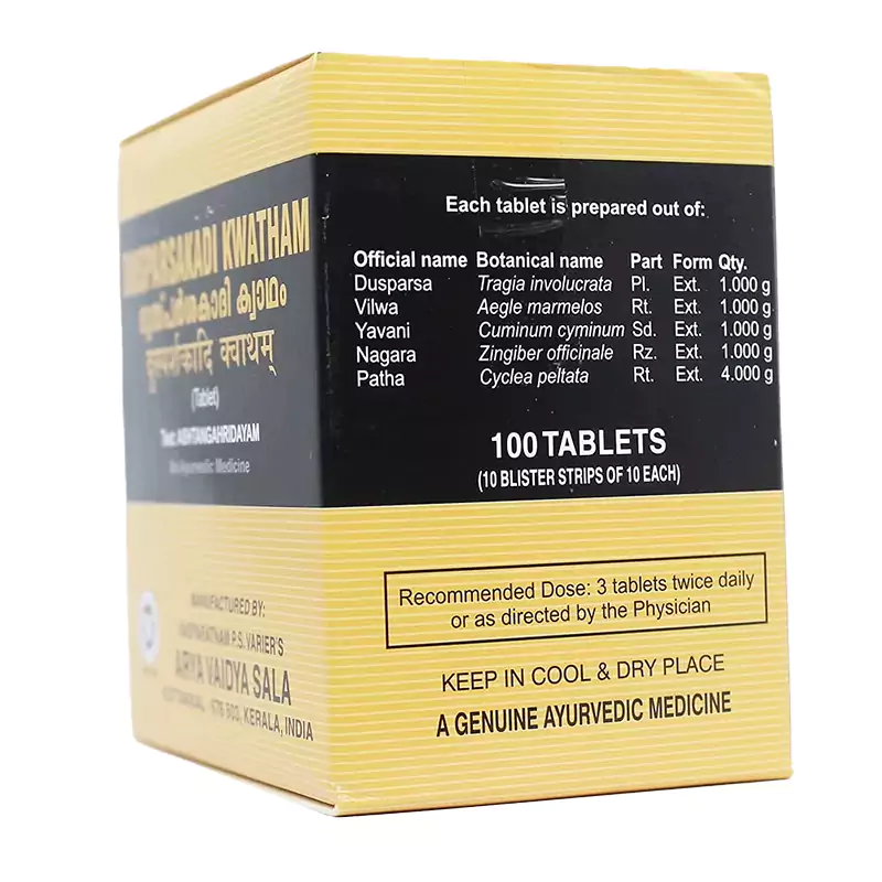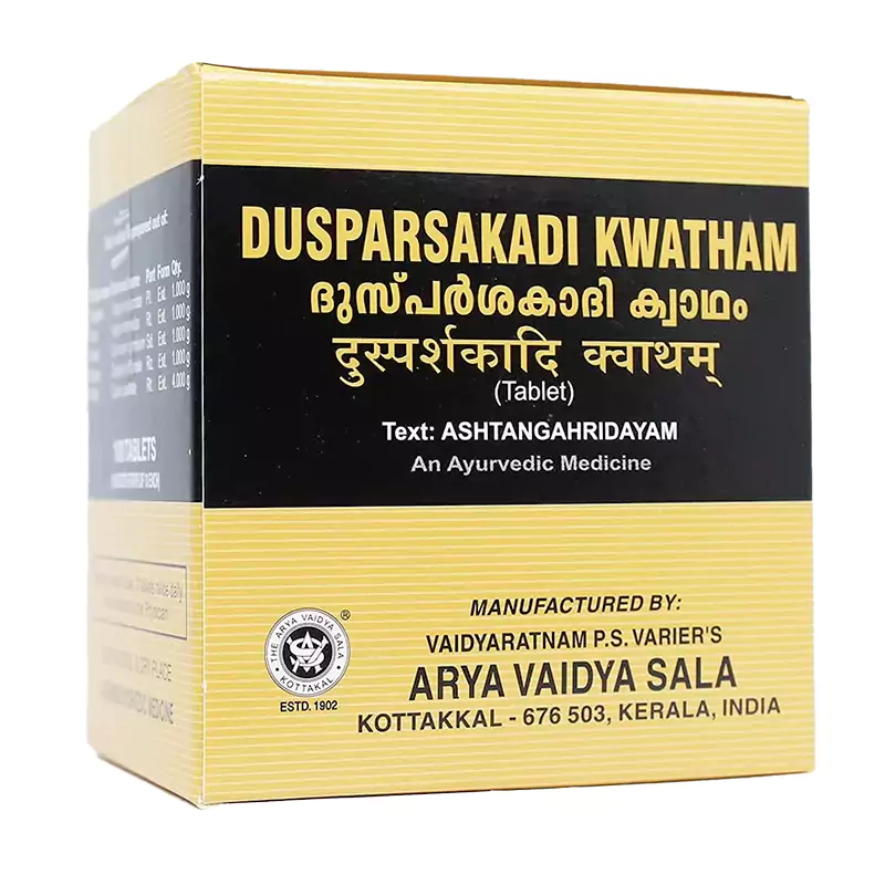 Kottakkal Arya Vaidyasala Dusparsakadi Kwatham, 100 Tablets-1.webp Kottakkal Arya Vaidyasala Dusparsakadi Kwatham, 100 Tablets-2.webp Kottakkal Arya Vaidyasala Dusparsakadi Kwatham, 100 Tablets-3.webp