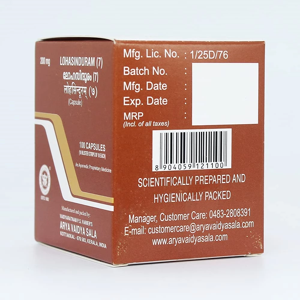 Kottakkal Arya Vaidyasala Lohasinduram (7) Capsules, 200 mg, 100 Capsules-1.webp