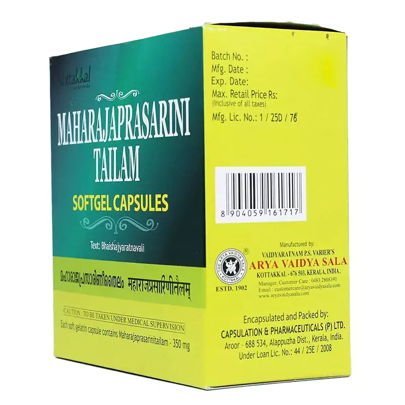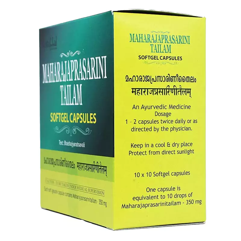 Kottakkal Arya Vaidyasala Maharajaprasarani Tailam Soft Gel Capsules, 100 Capsules-1.webp Kottakkal Arya Vaidyasala Maharajaprasarani Tailam Soft Gel Capsules, 100 Capsules-2.webp Kottakkal Arya Vaidyasala Maharajaprasarani Tailam Soft Gel Capsules, 100 Capsules-3.webp