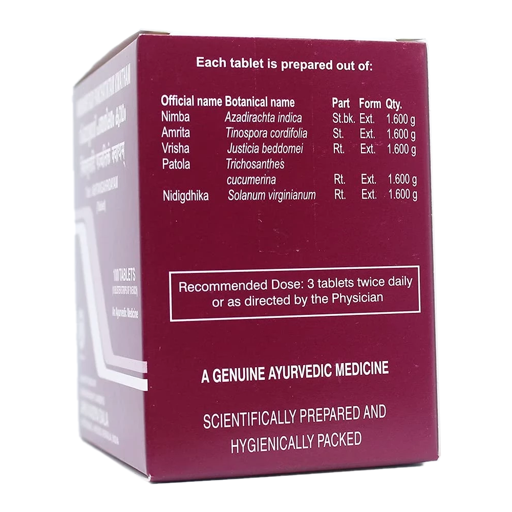 Kottakkal Arya Vaidyasala Nimbamritadi Panchatiktam Kwatham, 100 Tablets-1.webp Kottakkal Arya Vaidyasala Nimbamritadi Panchatiktam Kwatham, 100 Tablets-2.webp Kottakkal Arya Vaidyasala Nimbamritadi Panchatiktam Kwatham, 100 Tablets-3.webp