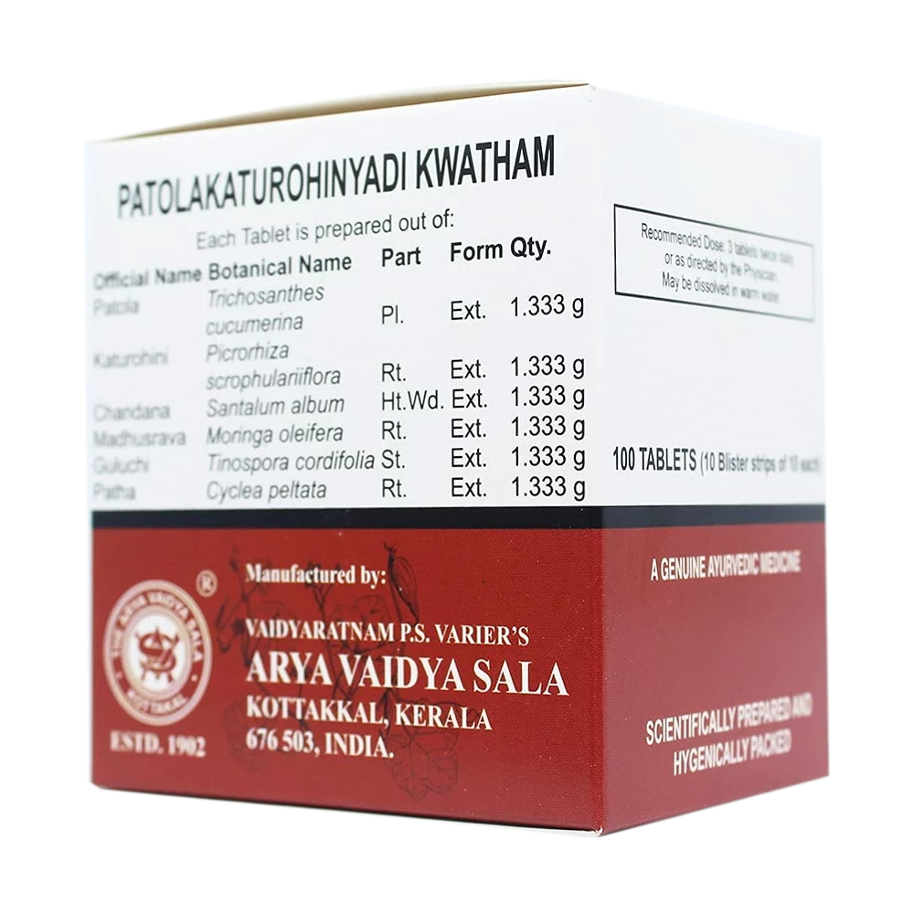Kottakkal Arya Vaidyasala Patolakaturohinyadi Kwatham, 100 Tablets-1.webp Kottakkal Arya Vaidyasala Patolakaturohinyadi Kwatham, 100 Tablets-2.webp Kottakkal Arya Vaidyasala Patolakaturohinyadi Kwatham, 100 Tablets-3.webp