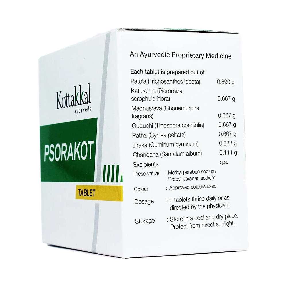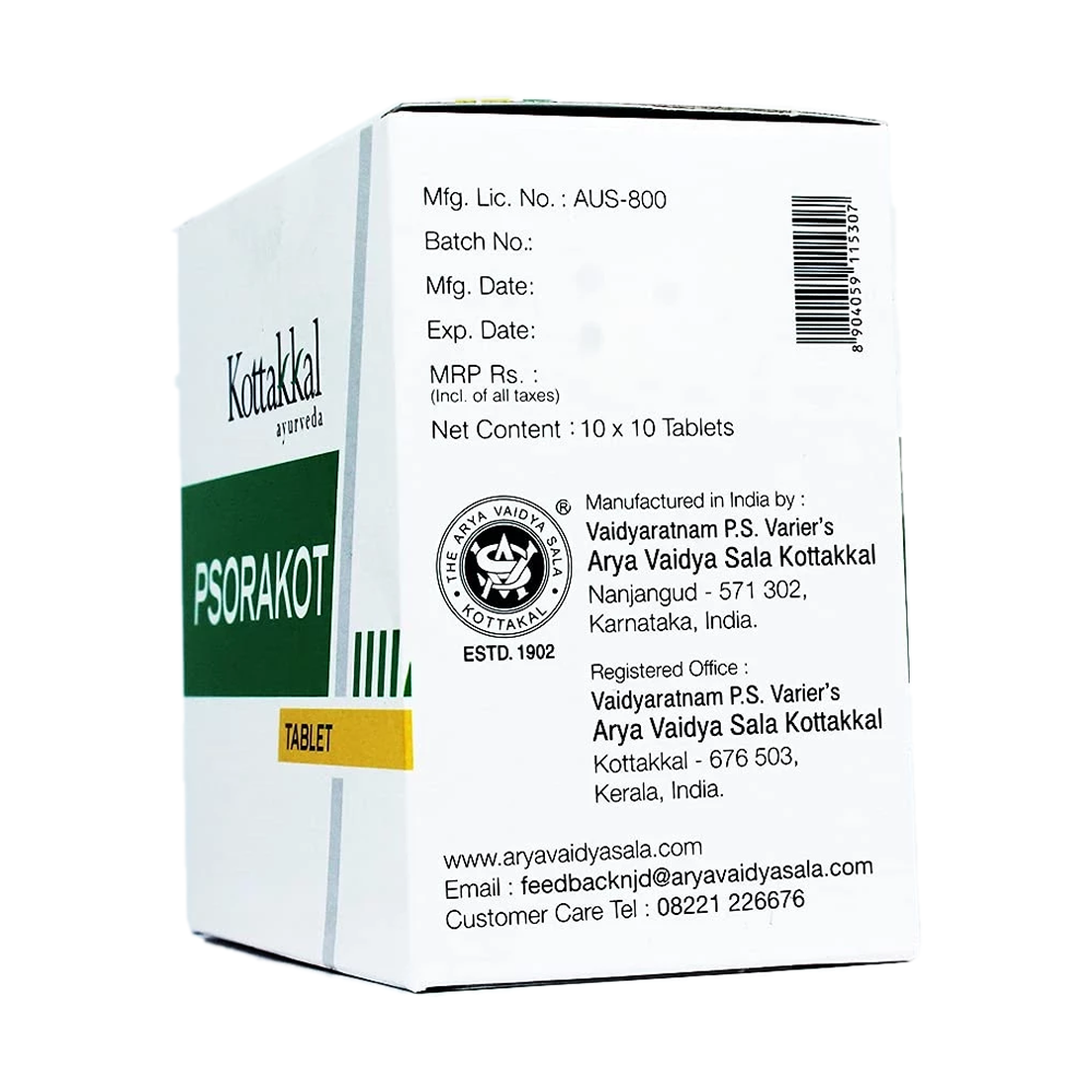 Kottakkal Arya Vaidyasala Psorakot Tablets, 100 Tablets-1.webp Kottakkal Arya Vaidyasala Psorakot Tablets, 100 Tablets-2.webp Kottakkal Arya Vaidyasala Psorakot Tablets, 100 Tablets-3.webp
