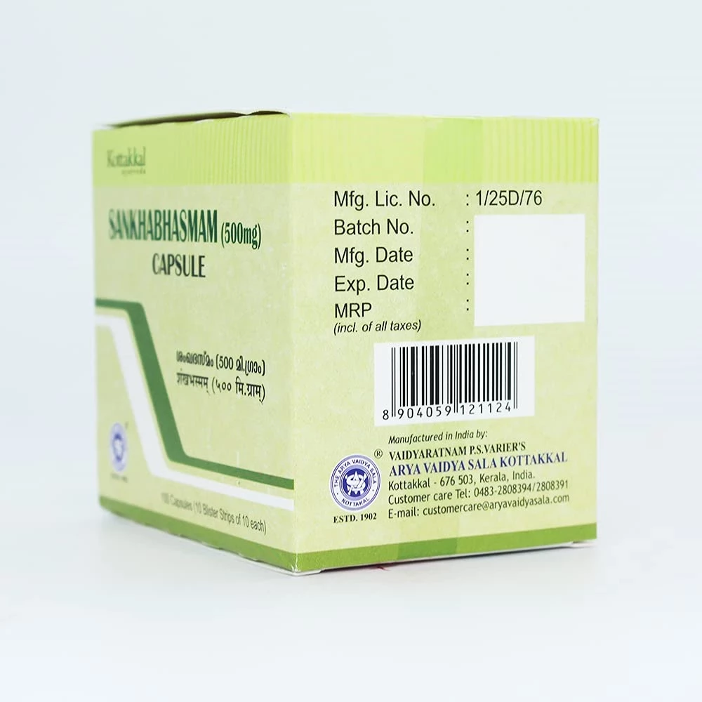 Kottakkal Arya Vaidyasala Sankha Bhasmam Capsules, 500 mg, 100 Capsules-1.webp Kottakkal Arya Vaidyasala Sankha Bhasmam Capsules, 500 mg, 100 Capsules-2.webp Kottakkal Arya Vaidyasala Sankha Bhasmam Capsules, 500 mg, 100 Capsules-3.webp