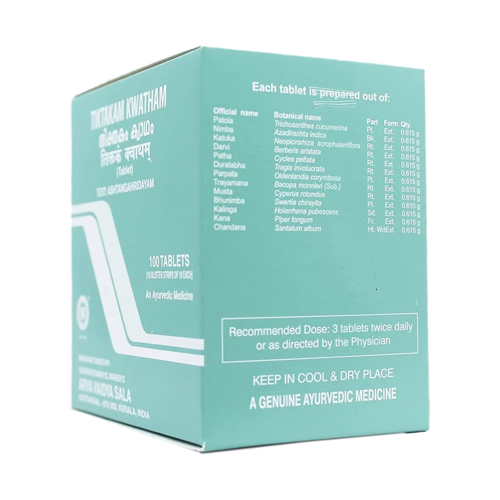 Kottakkal Arya Vaidyasala Tiktakam Kwatham, 100 Tablets-1.webp Kottakkal Arya Vaidyasala Tiktakam Kwatham, 100 Tablets-2.webp Kottakkal Arya Vaidyasala Tiktakam Kwatham, 100 Tablets-3.webp