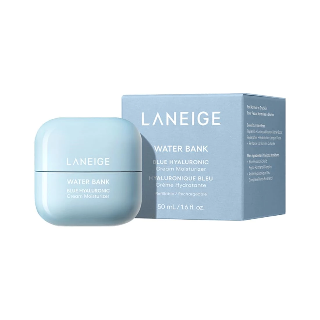 Laneige Water Bank Hyaluronic Acid Moisturizer Cream is a deeply hydrating formula designed to lock in moisture and replenish dry skin. Infused with hyaluronic acid, it delivers long-lasting hydration while enhancing the skin's natural moisture barri ...Show more
