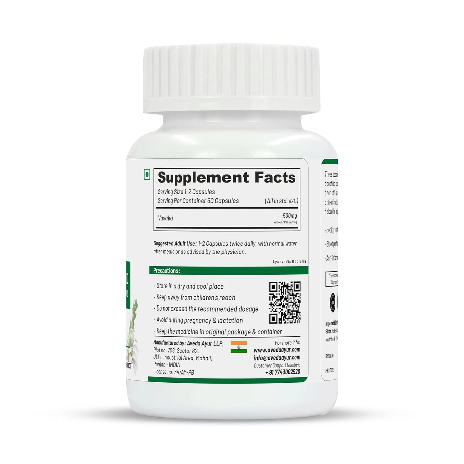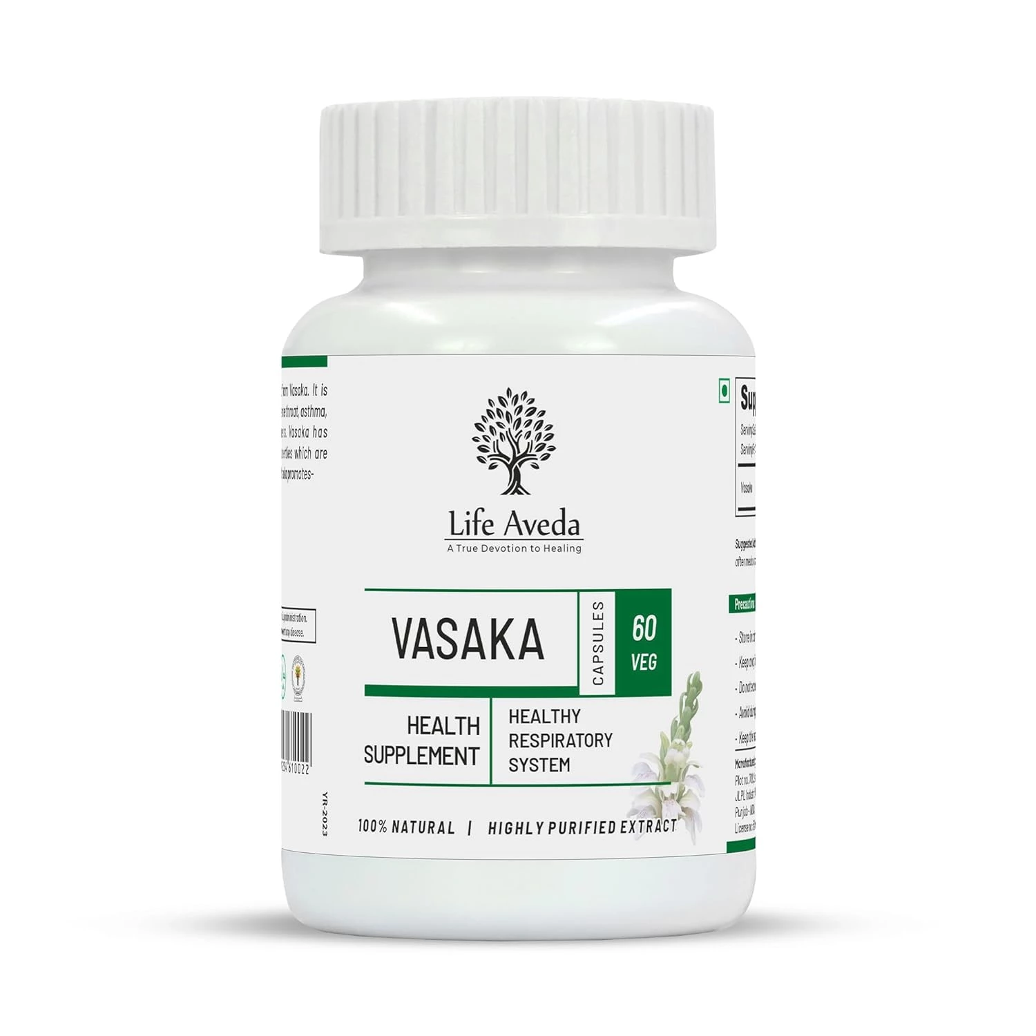 Life Aveda Vasaka Veg Capsules are crafted with pure Vasaka (Malabar Nut) extracts to support respiratory health and overall well-being. These vegetarian capsules promote clear breathing, help manage coughs, and provide relief from seasonal discomfor ...Show more
