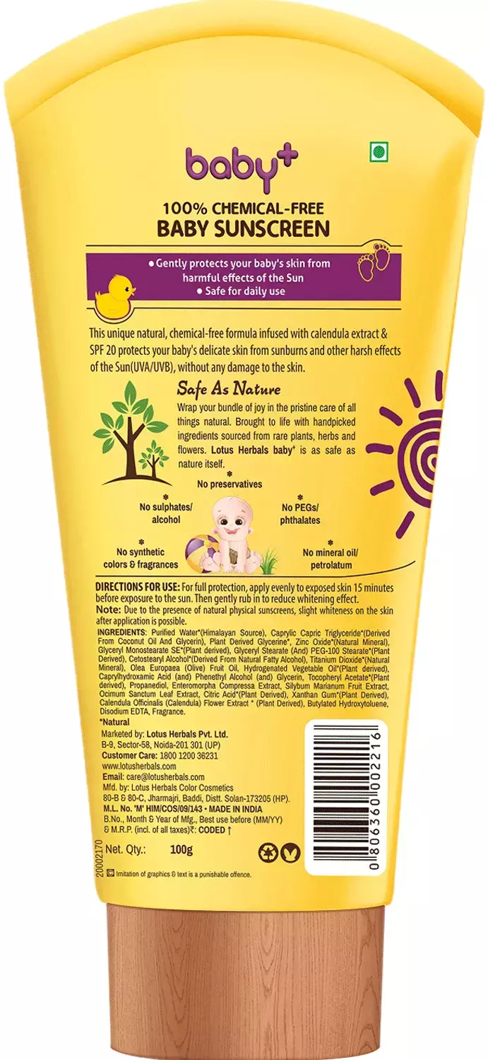 Lotus Herbals Baby+ Spf 20 PA+++ Sunscreen, 100 g-1.webp Lotus Herbals Baby+ Spf 20 PA+++ Sunscreen, 100 g-2.webp