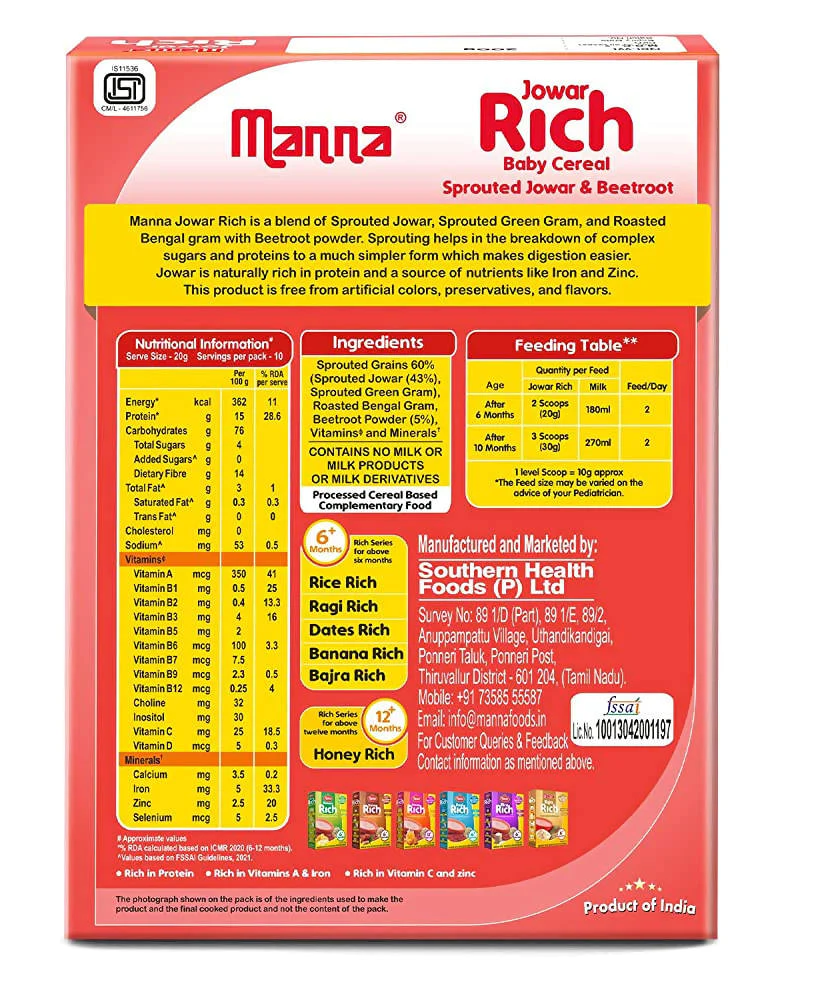 Manna Jowar Rich Baby Cereal For 6+ Months, 200 g-1.webp Manna Jowar Rich Baby Cereal For 6+ Months, 200 g-2.webp