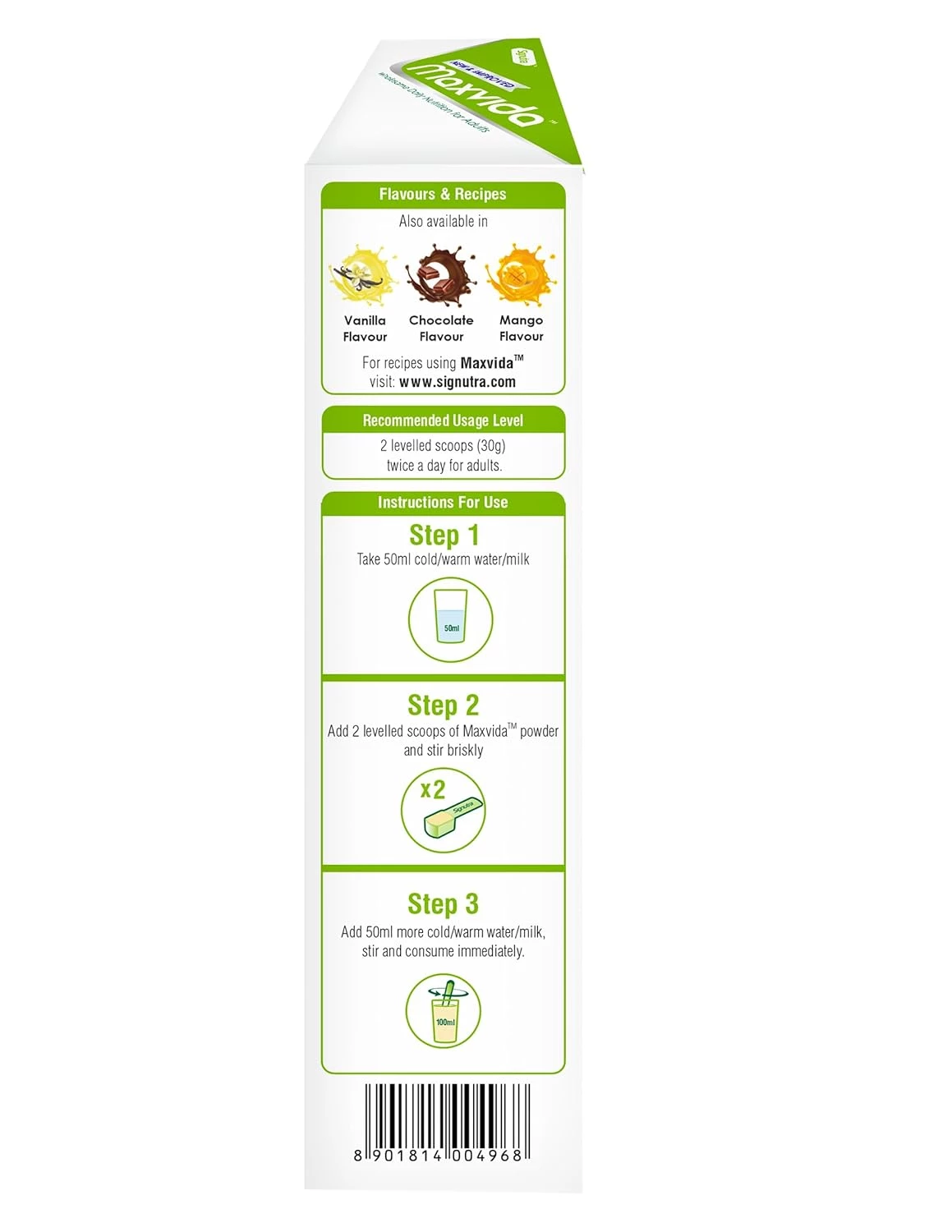 Maxvida Balanced Nutrition Supplement in Kesar Elaichi flavor offers a delicious and nutritious way to meet your daily dietary needs. Packed with essential vitamins, minerals, protein, and fiber, this supplement supports overall health, boosts energy ...Show more