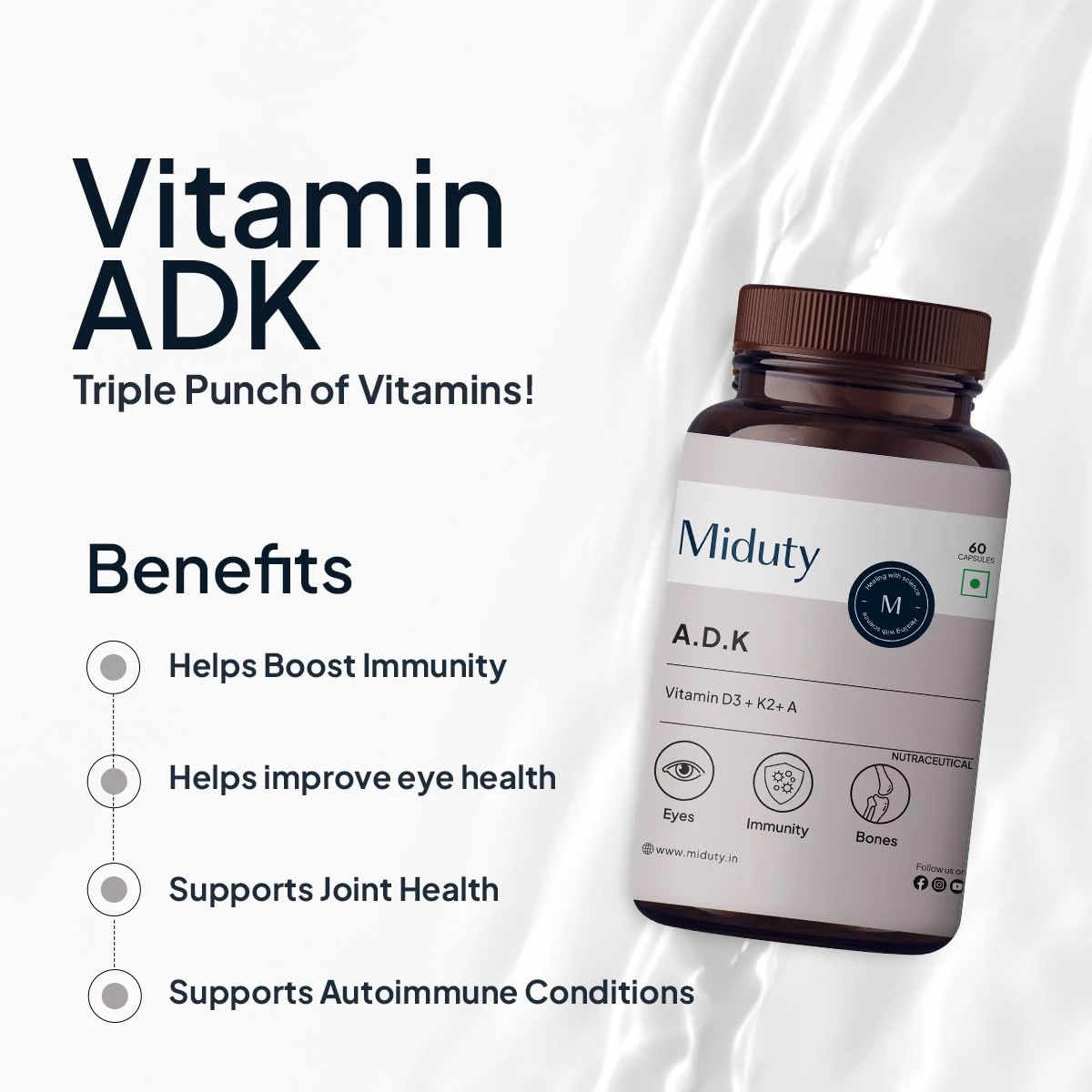Miduty Vitamin ADK, Vitamin D3 and K2 Supplement