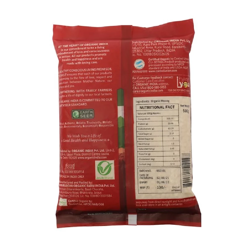 ORGANIC INDIA Moong Dal is made from certified organic, unpolished, de-husked Moong lentils sourced from organic farms in India. Packed with nutrition, moong dal dhuli is one of the healthiest and easy-to-digest dals and is naturally rich in nutrient ...Show more