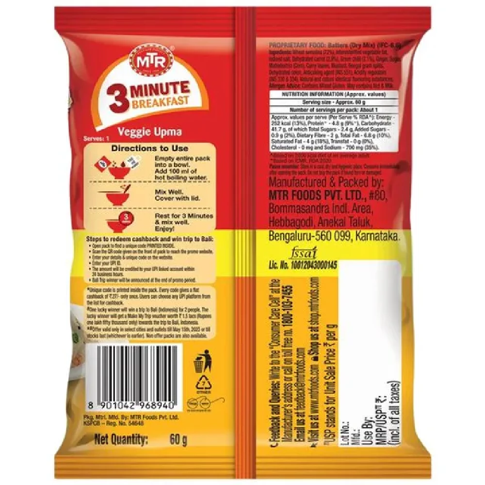 MTR 3 Minute Vegetable Upma, 60 g-1.webp