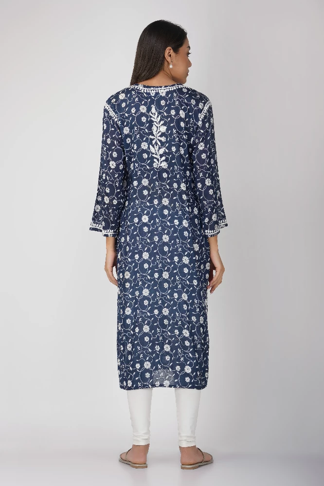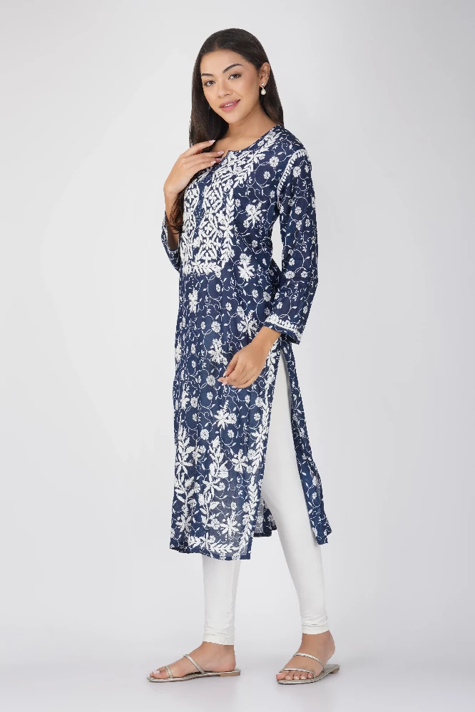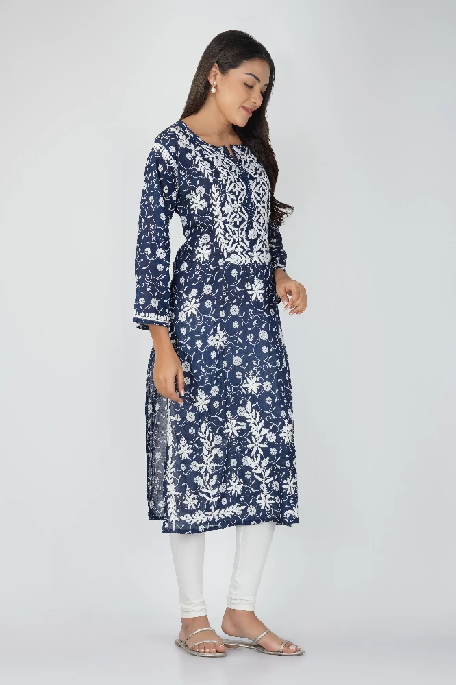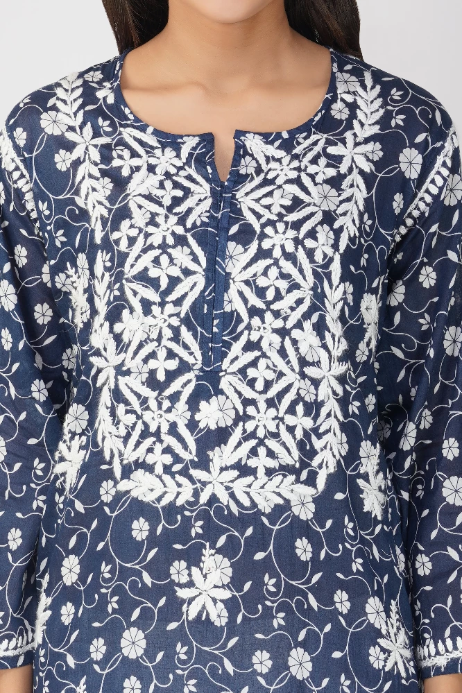 Navy Blue Malmal Cotton Chikankari Kurti-1.webp