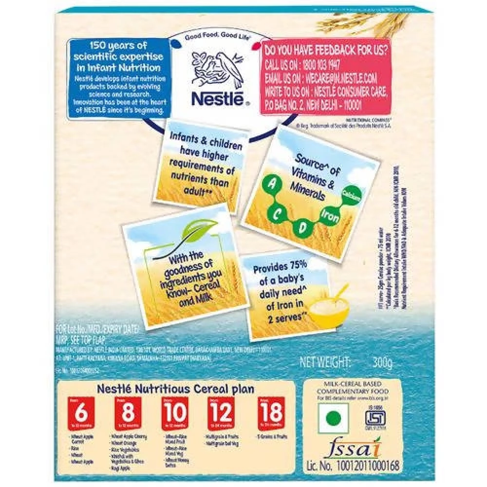 Nestle Cerelac Baby Cereal with Milk & Rice is a complementary food for babies from 6 to 24 months. While infants and children have higher requirements of nutrients than adults, 2 serves of Cerelac Rice Cereal provides 37% of a baby's daily need of i ...Show more