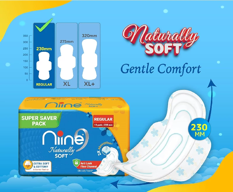 Niine Naturally Soft Regular Sanitary Pads, 18 Pads-1.webp