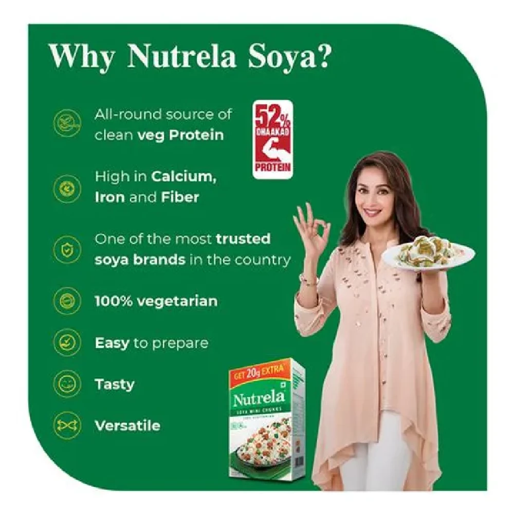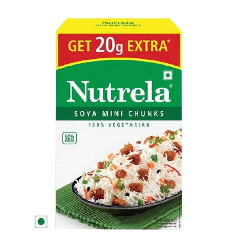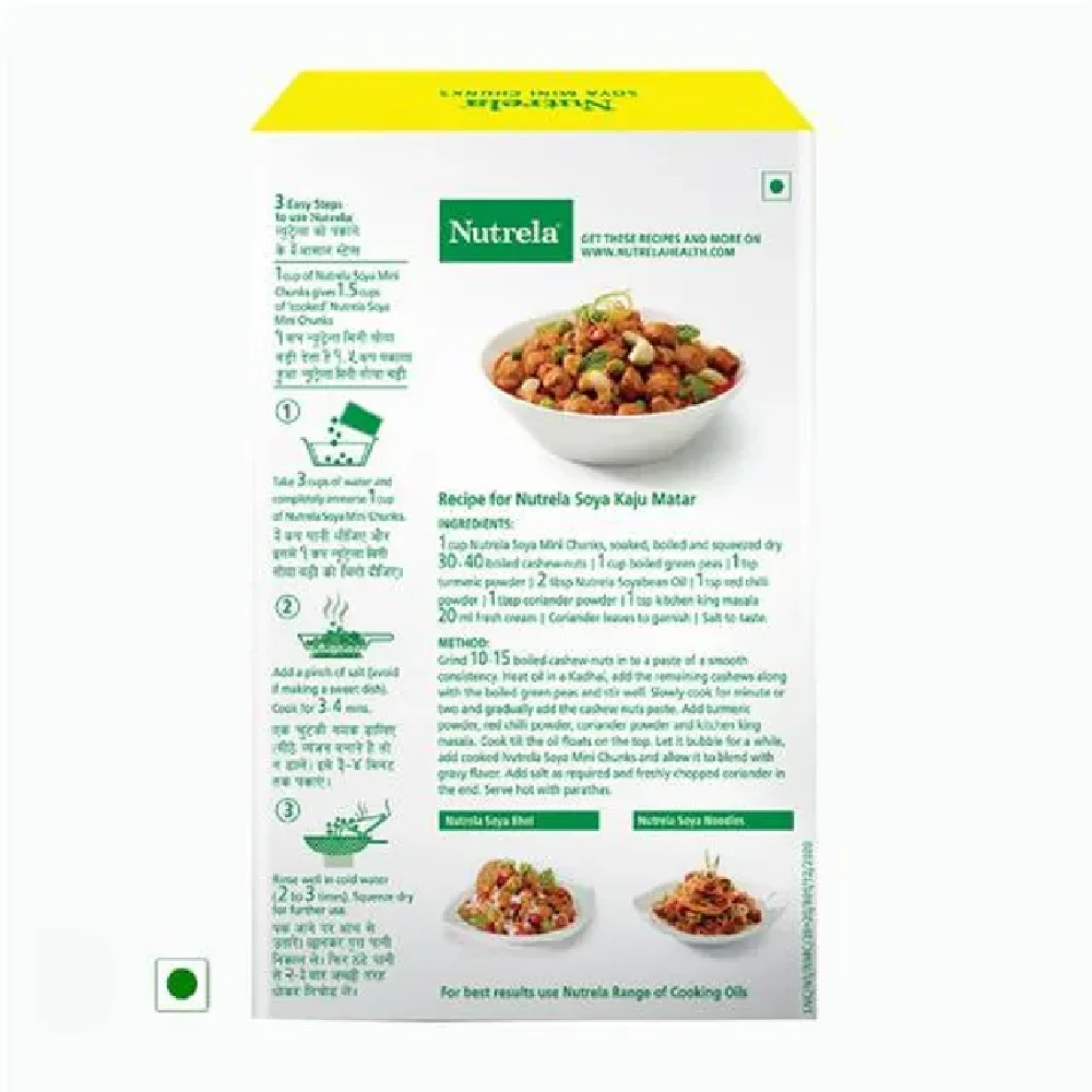 Patanjali Foods Ltd Nutrela Soya Mini Chunks are made from soy flour. Soya Chunks contain immunity building nutrients, protein, iron and zinc. It is rich in dietary fiber and strengthens your immunity. It is very easy to prepare and makes tasty dishe ...Show more