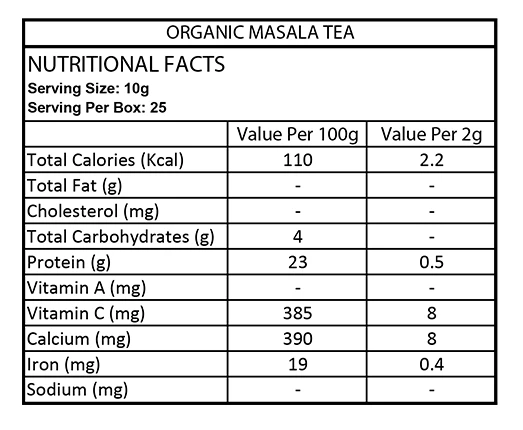 Organic masala tea is a wholesome package of taste and health. The constituent spices and anti-oxidants improve metabolism and have stress relieving properties. ...Show more
