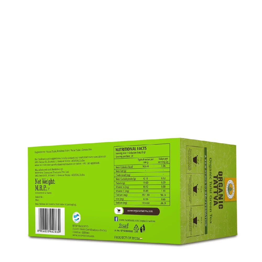 Organic Tattva Organic Tulsi Green Tea, 40 g (20 Tea Bags)-1.webp Organic Tattva Organic Tulsi Green Tea, 40 g (20 Tea Bags)-2.webp Organic Tattva Organic Tulsi Green Tea, 40 g (20 Tea Bags)-3.webp